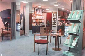 Cornelia-Regina Scheck aus Lübeck, spezialisiert auf Feng-Shui Wirtschafts- und Architekturberatung, stellte zunächst einmal die Vorzüge des Standortes fest ("der Eingang korrespondiert mit einer Ihrer besten Himmelsrichtungen"). Die Innengestaltung wurde speziell auf die Eigenschaften ihrer Kundin abgestimmt. Dominant ist hier das Element Metall, das uns im Alltag in metallischen Farben wie Gold und Silber begegnet. So wurden die Wände gold-gelb in vielen Variationen gestrichen, ungewöhnlich und sehr wirkungsvoll. Wichtig: die Definition und Gestaltung einzelner Bereiche. Schwache Energien, die sich in jedem Raum befinden, wurden durch Pflanzen positiv gestärkt, die starken Energiebereiche für den Standort der Kasse ("Reichtumsecke"), des Verkaufstisches ("Ruhm") und natürlich den - in diesem Fall bereits vorhandenen - Eingangsbereich ("Karriere") gewählt.