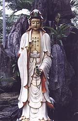 Die höchste Gottheit der Chinesen ist Guanyin. Sie gilt als Göttin der Barmherzigkeit. "Guanyin", so der Grandmaster, "gehört in jedes Haus und sollte direkt gegenüber von der Eingangstür stehen!" Eine Guanyin kann man am besten in der China Town von KL kaufen. Also auf nach China Town.